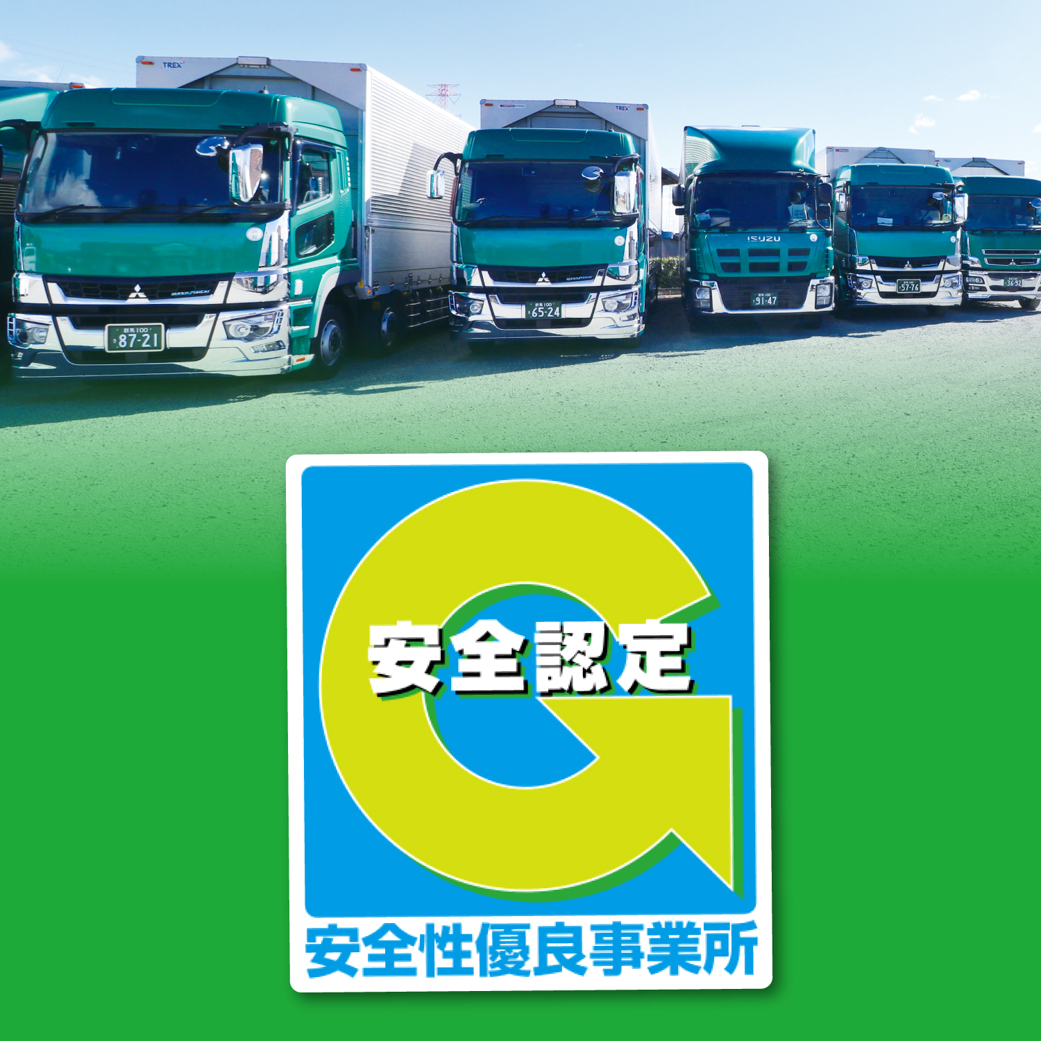 運送事業は今まで以上に“安全性”の視点から優良な事業者が選ばれる時代です。2003年7月から利用者がより安全性の高い事業者を選びやすくするための環境整備を図るため、3テーマ、30項目以上の厳しい評価基準をクリアした事業所だけが認定される「Gマーク」をスタート。大間々急送は“安全性優良事業所”として「Gマーク」を取得後、すでに4回評価をクリアし、更新しています。大間々急送は、安全性に対する取組や運転の事故や違反に対する注意や指導を徹底し、これからも安全性優良事業所を維持し続けてまいります。
